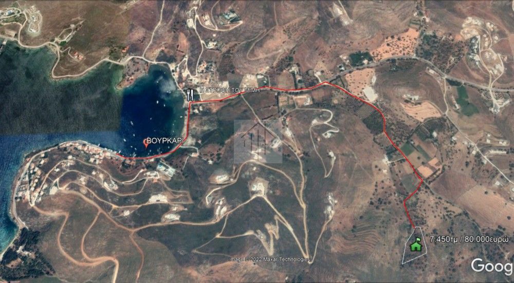 Το αγροτεμάχιο είναι 7.450τμ, έχει παλαιό κτίσμα 40τμ προ '55, βρίσκεται στην θέση «Μαύρου».